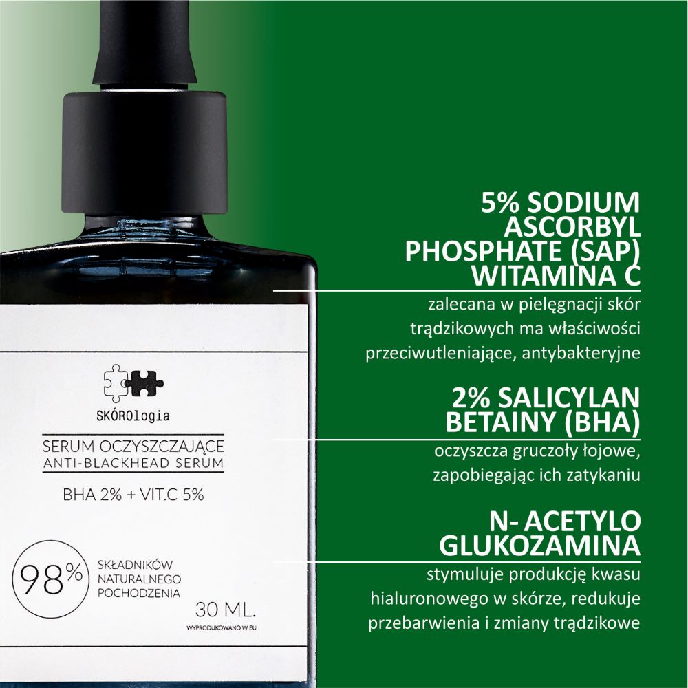 1. Jakie są kluczowe składniki Serum Oczyszczające-Anti-Blackhead BHA 2%+VITC 5% i jakie mają działanie?